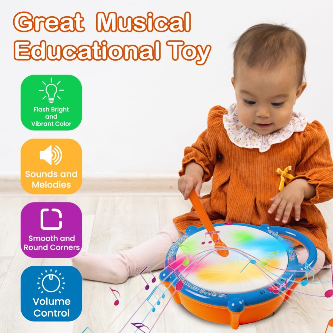 The toy is good for baby's sensory development. The interactive drum toy engages children with light and sounds