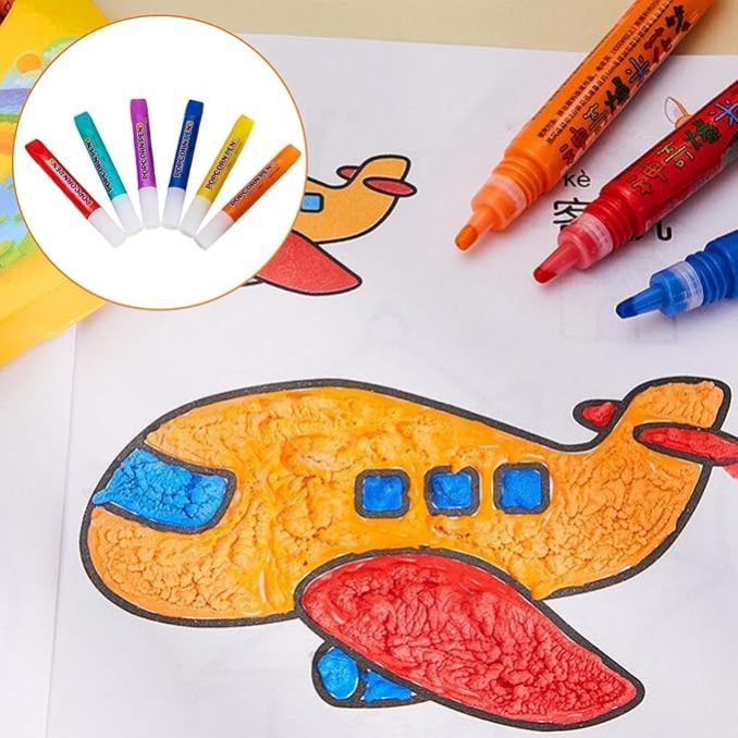 Bubble Popcorn Drawing Pens for Decorating Cards Boards, Art & Craft | Decorative Stationary Material for Kids/Boys/Girls | 6Pcs Colorful Markers for for Birthday Gift & School Projects