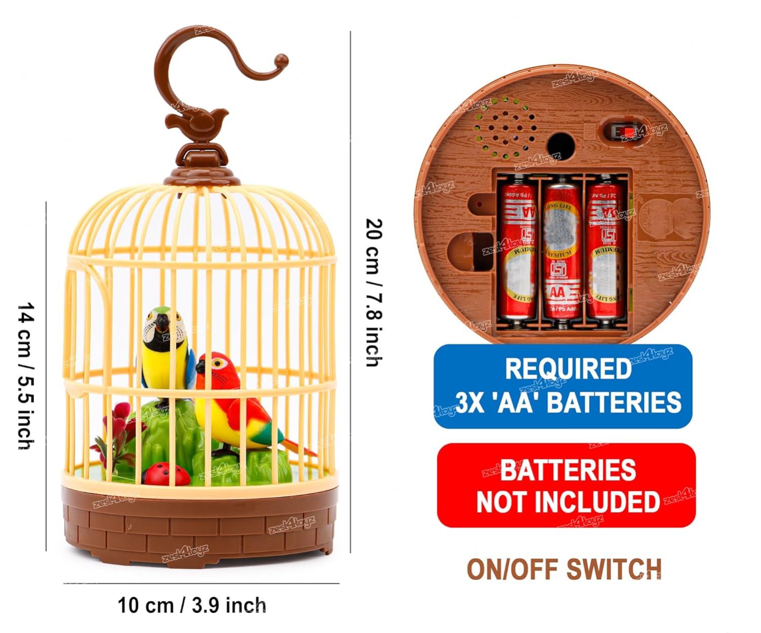 SENSORY TOUCH:- All you have to do is make a sound near the birds on the branches it starts singing and shake his wings and tail